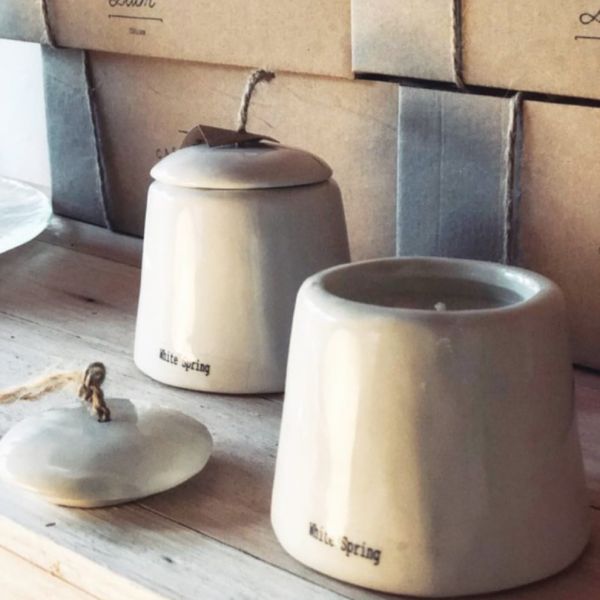 Azucarera de cerámica realizada artesanalmente de 8cm x 7 cm de diámetro. Pabilo de algodón. Perfume en vela por + de 40 hrs.